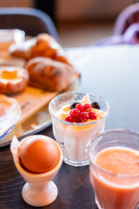 ’s Ochtends wandel je zo naar Eetcafé De Boerderij voor een vers en uitgebreid ontbijt. Broodjes, yoghurt met fruit, een eitje, smoothies, koffie… precies wat je nodig hebt om weer vol energie op pad te gaan.