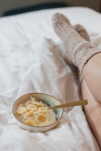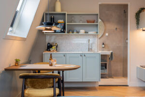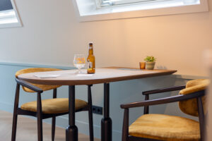 Mijn kamer voelde meteen als een rustige uitvalsbasis. Na een lange strandwandeling was het heerlijk thuiskomen. Even opwarmen, een kop thee erbij en mijn notitieboekje open. Ideeën opschrijven terwijl de wind buiten langs het eiland waait — beter wordt het bijna niet.