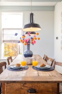 Binnen was het al net zo sfeervol. Authentiek, knus, en tegelijk helemaal comfortabel. Het voelde alsof we dit huis al jaren kenden. We zetten meteen thee, kuierden een beetje door de kamers alsof we op ontdekkingstocht waren, en binnen tien minuten zaten we met z’n allen aan de eettafel alsof het onze vaste plek was.