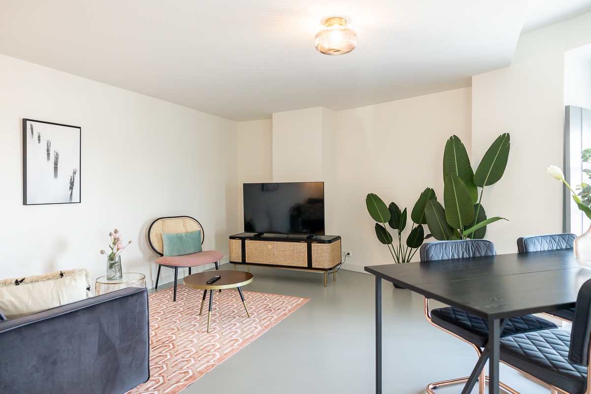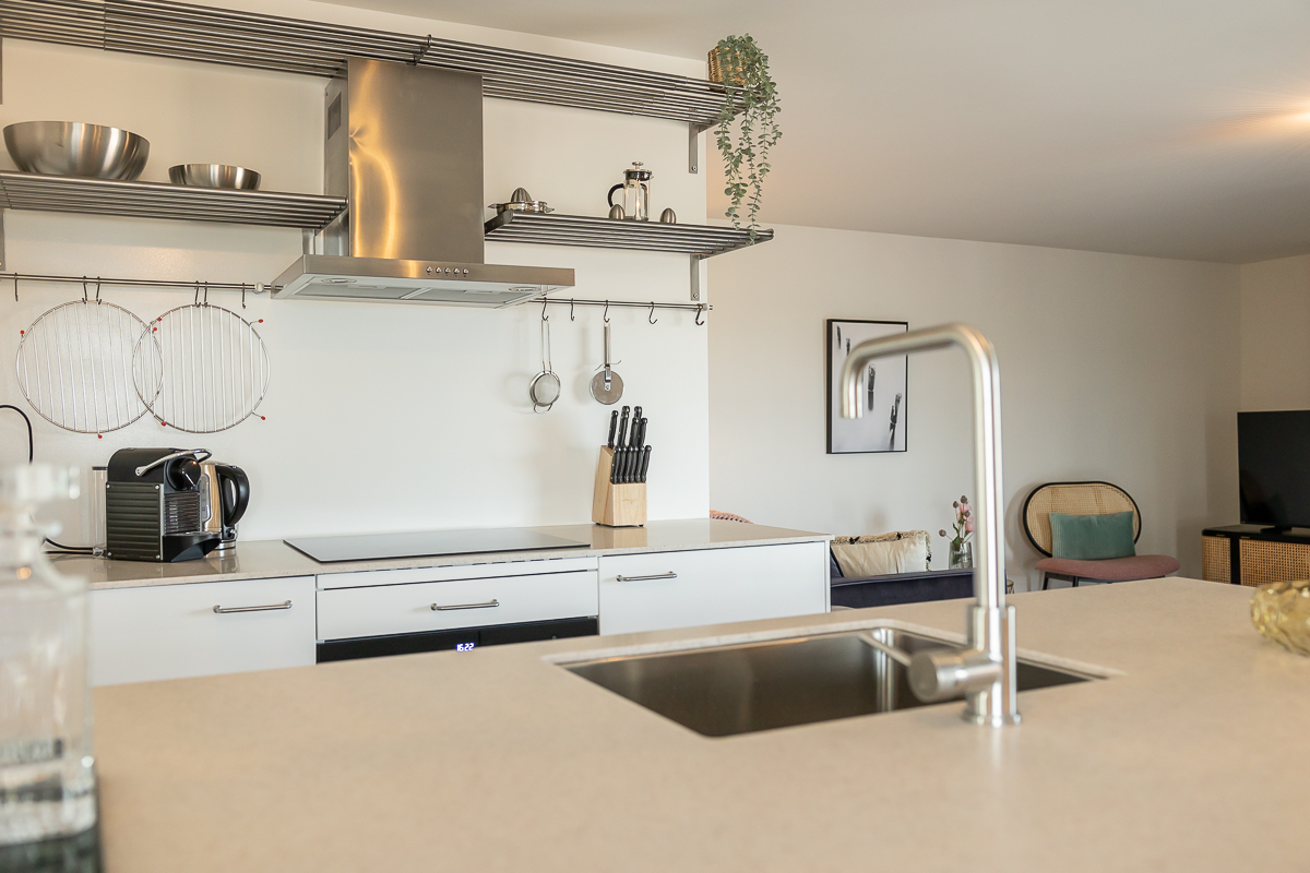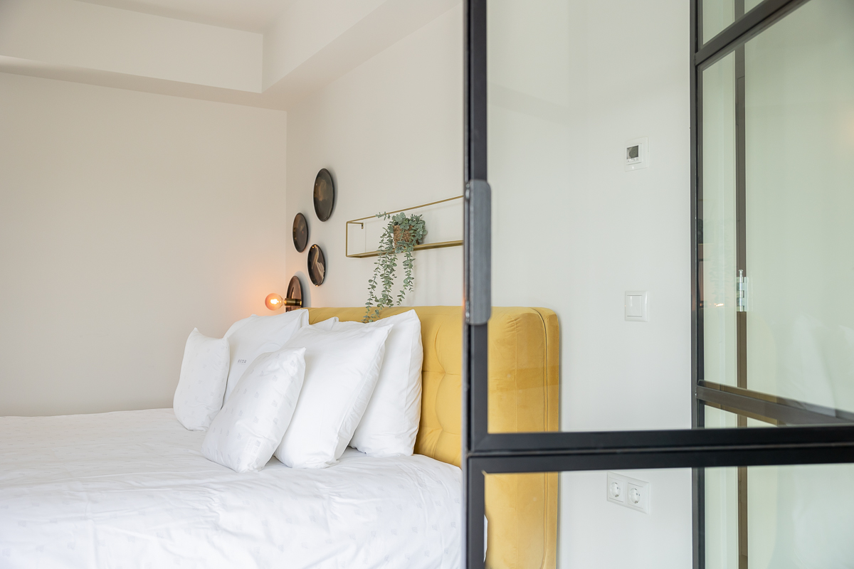 De lift brengt ons op de 6de verdieping waar ons appartement zich bevindt. Als je het appartement binnen stapt ben je gelijk verliefd. Mooie ramen geven je aan elke kant uitzicht over de stad en het interieur is echt prachtig. Alles is aanwezig, een keuken, een ruime zithoek en een slaapkamer met en-suite badkamer. Je kunt in het appartement met 2 personen slapen.