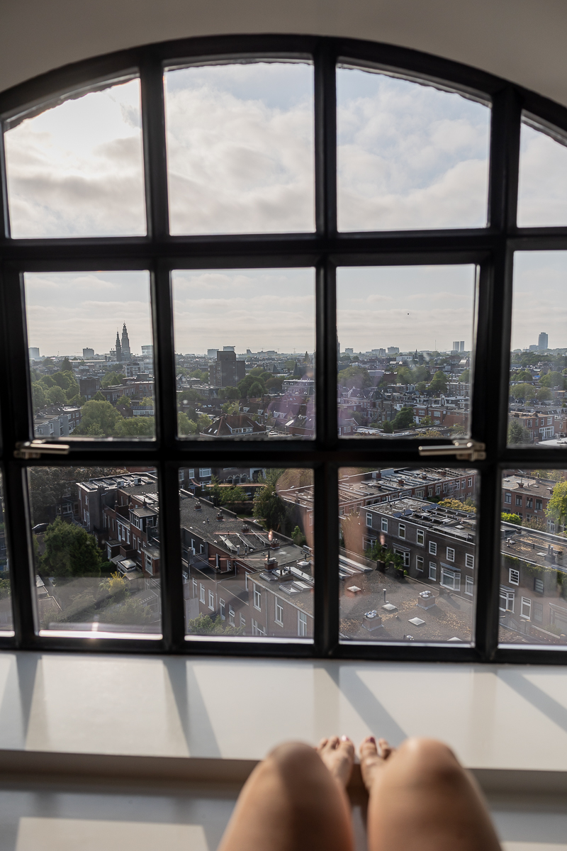 Je snapt… dit is gewoon genieten. Het uitzicht verveelt nooit en de zon draait gedurende de dag om ons appartement heen. In de avond kun je vanuit de douche de zonsondergang bewonderen en valt het leven stil in de stad. Als je ’s ochtends wakker wordt komt de stad ook weer langzaam tot leven terwijl wij langzaamaan wakker worden en ons helemaal privé bevinden bovenin de toren.