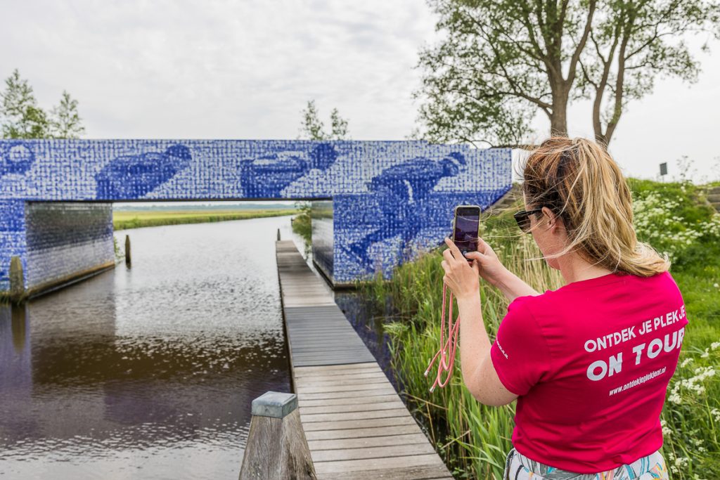 Vera vertelt dat ze het Eflstedenbruggetje (met al die mooie tegeltjes) nog nooit in het echt gezien heeft en ik zeg; “Laat dat nou net op de route zijn richting Leeuwarden!”. Dus daar rijden we langs en dat is een mooie toevoeging in deze tocht door Friesland.