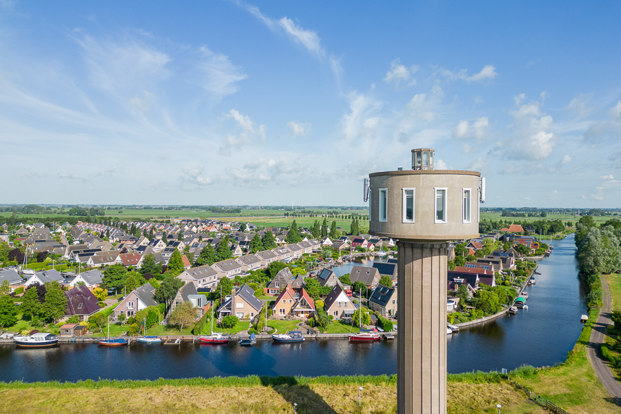 Na m’n bezoek wordt het iets droger en rijd ik vanuit Drachten naar Nes. Nes ligt nauw verbonden aan Akkrum, ze noemen het dan ook wel een ‘tweelingdorp’. Ik heb er zin in want hier in Nes ga ik slapen. En niet op een gewoon plekje, nee, ik ga in de watertoren slapen! Dit soort plekjes vind ik altijd reuze interessant, om de geschiedenis, de architectuur en natuurlijk het geweldige uitzicht!